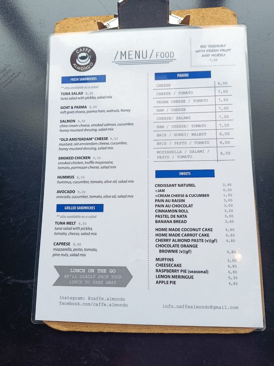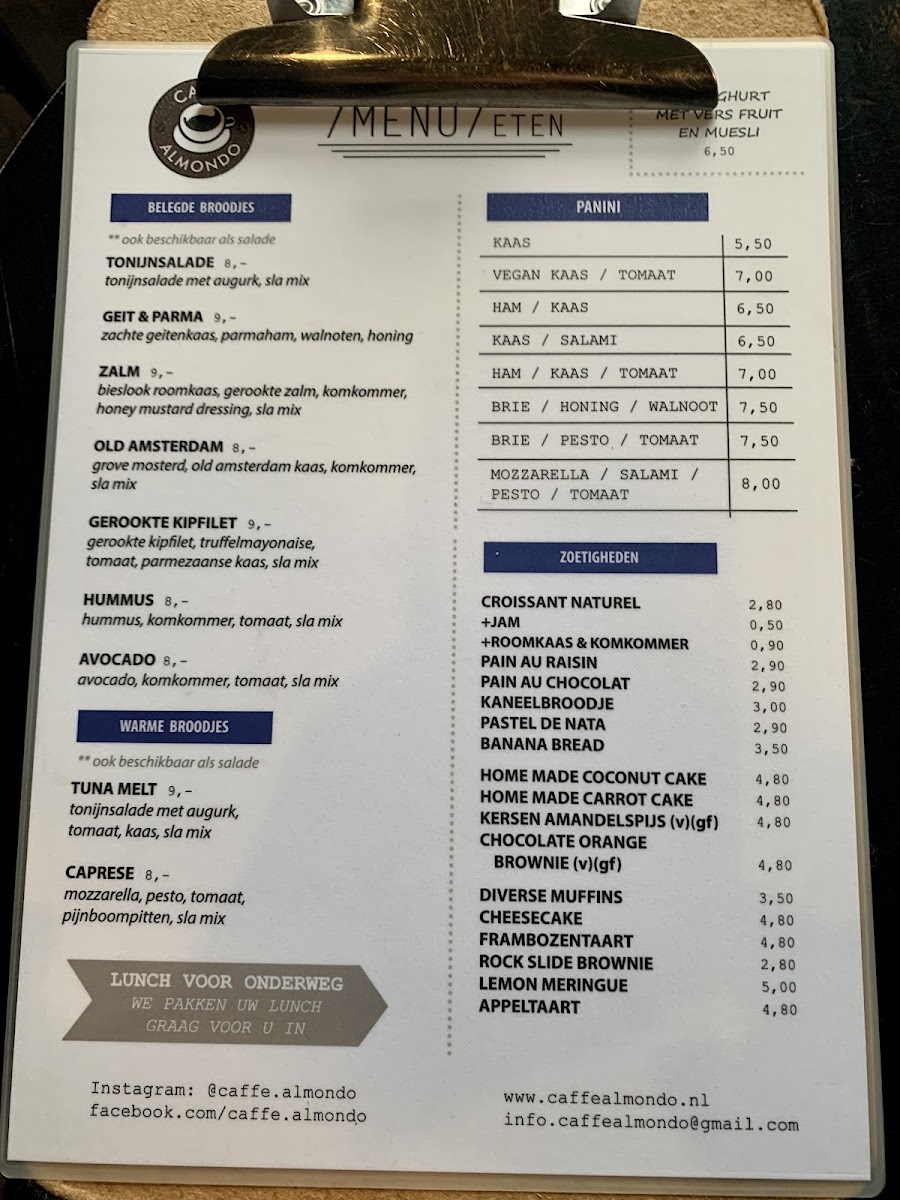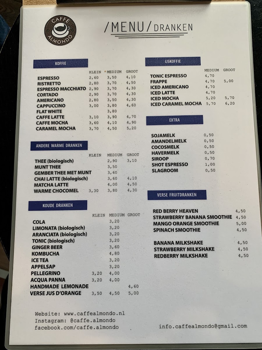 Welcome to Caffè Almondo, a hidden gem located in the heart of The Hague at Korte Poten 46. This charming café creates an inviting atmosphere where coffee lovers can enjoy quality brews and delightful bites. Customers rave about the enormous coffees and the creativity of the drink menu, showcasing a range from rich espresso macchiatos to creamy chai lattes.